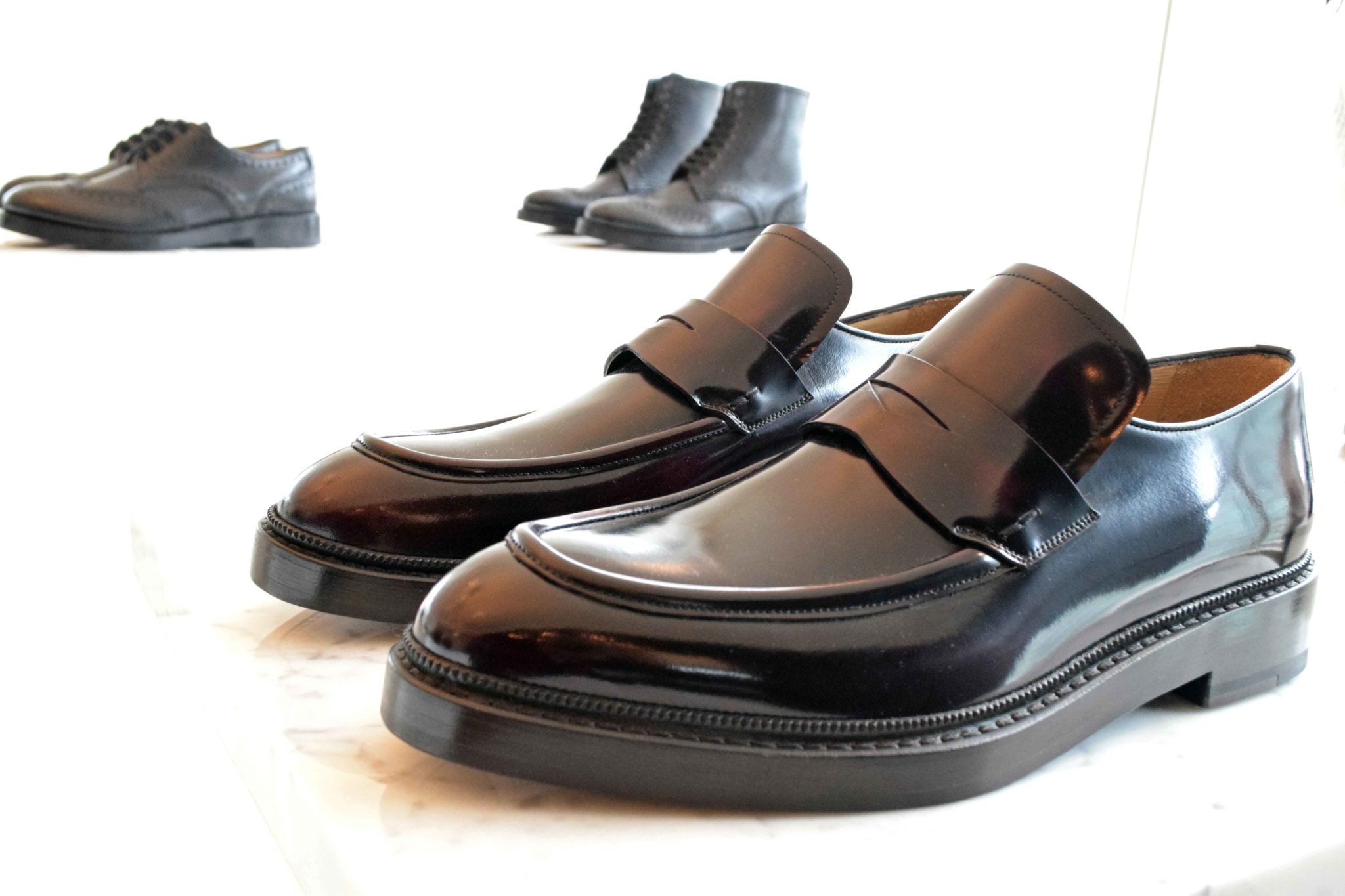 For an inaugural showing, Andrew proved that he is no beginner and produced a strong collection that should capture the attention of the well heeled for the upcoming Autumn/Winter 2016 season. Standouts included the Castor Loafer and the Alastor Lace-up Brogue both in cordovan Spazzolato calf. In addition, the high-tops in a midnight blue jacquard print were also clear winners. According to Andrew, “You can’t fake a good pair of shoes or a good haircut,” and from the looks of his first collection, these shoes are no fakes.