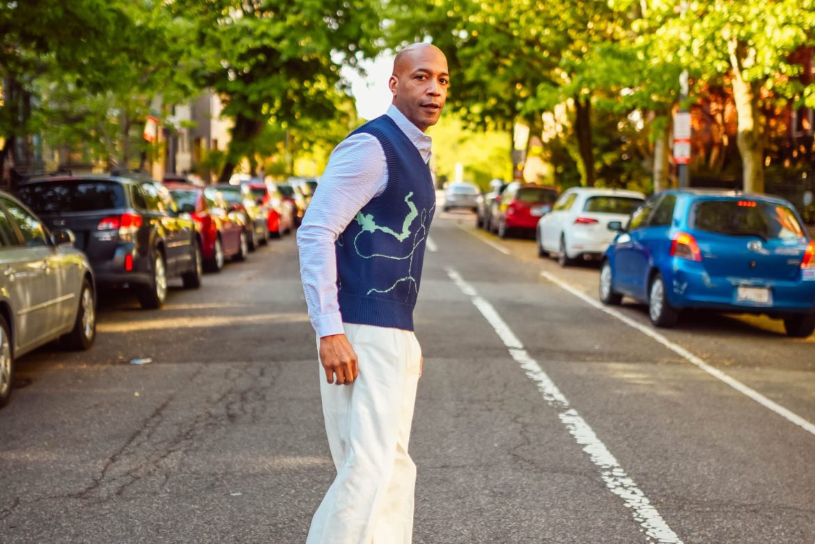 Shirt – Emporio Armani |Jacquard Knit Vest – COS | Wide leg Pants – COS – (Mine cotton version are sold out but try the drawstring or wool versions) | Shoes – Common Projects