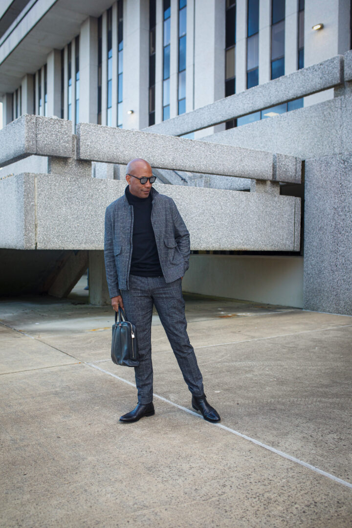 I’m a big fan of the suit. I wanted something a little different and this jacket paired with a turtleneck a mod sixties vibe. For a more conservative look, I can easily swap out the jacket for a more traditional blazer and pair with a shirt and tie. However, my look is still appropriate for the office and can easily be worn for a night out.